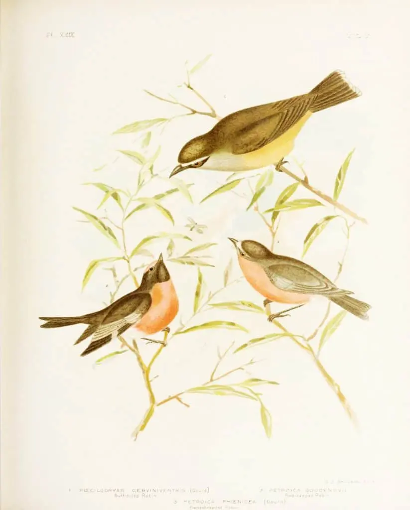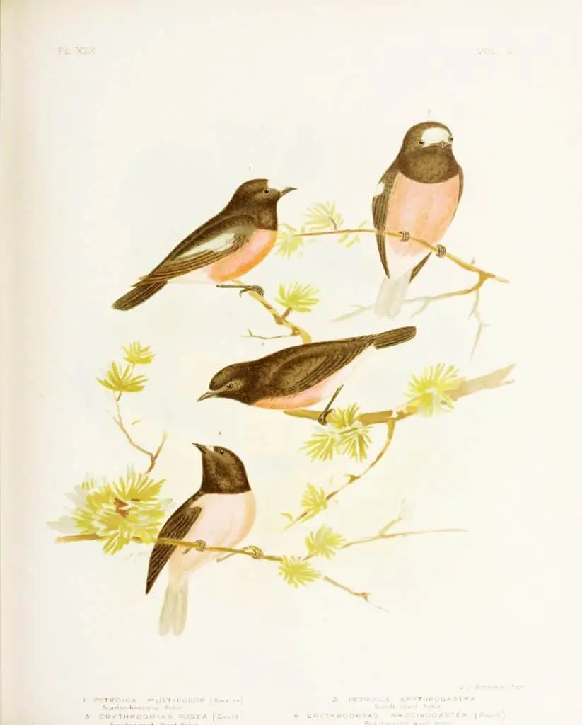 If this is your first time stopping by my blog. Welcome! I have been posting a ton of printable vintage art recently. It’s hard to write something interesting about printables for each post:). I think I started out fairly strong for the first 5 printable posts, but I’m probably up to about 15 by now, and it’s getting a bit monotonous. I do hope, though, that these free printables will help you get inexpensive art to help you adorn your walls. I love art on walls, but I know the price tag for art can be high. I love trying to find vintage art (where the copyright has expired) and grouping it together. The Biodiversity Heritage Library has helped in this endeavour by providing thousands of beautiful illustrations. As I was looking through the Bird prints today that I saved from this site, I noticed how pretty the coral hues of the bird’s feathers were. Earlier today I did a post with a grouping of 8, but I thought these would look nice printed larger with only three grouped together. Possibly over a bed or console table.